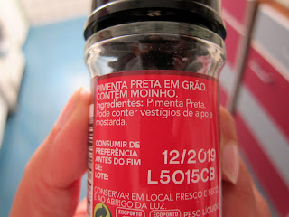 Coloquei os cogumelos em cima das bases, borrifei com azeite e temperei com sal e pimenta. Não deixa de ser preocupante que uma pessoa compre pimenta preta em grão e a mesma tenha um alerta a avisar que pode conter aipo e mostarda. Não quero pensar as voltas que a pimenta dá, para ser necessário avisar que pode ter aipo e mostarda.